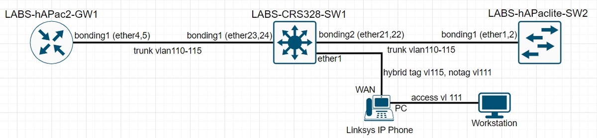 Хочу разобрать тему коммутации в mikrotik и на базе BVF и через switch chip, но не в рамках одного свитча (сферическая настройка в вакууме), а показать рабочий пример со шлюзовым роутером, уровнями дистрибуции и доступа, множеством сетей. В рамках одной статьи получается очень громоздко, потому разобью тему на три статьи: настройка BVF на коммутаторе (эта статья), настройка схемы "router on a stick" и BVF на маршрутизаторе, настройка коммутации через switch chip (но без коммутаторов сотой и двухсотой серий). Будет ещё четвёртая статья в этой серии, про настройку CAPsMAN, на базе созданной схемы коммутации.