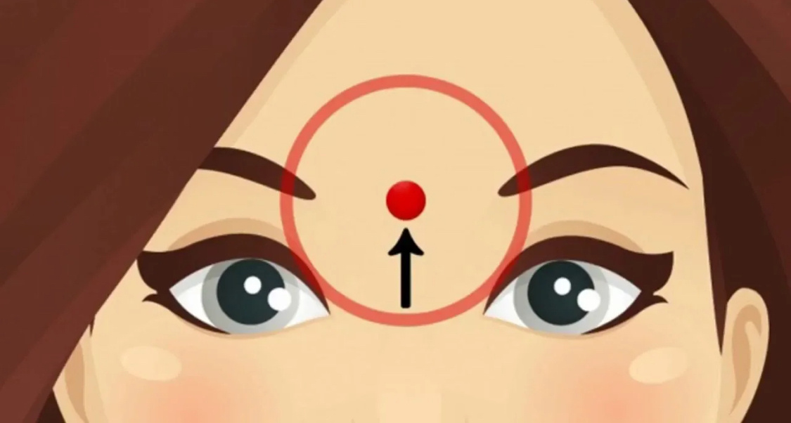 Веки поднимаем, глаза открываем, расслабляемся - массируем 1 зону между бровей