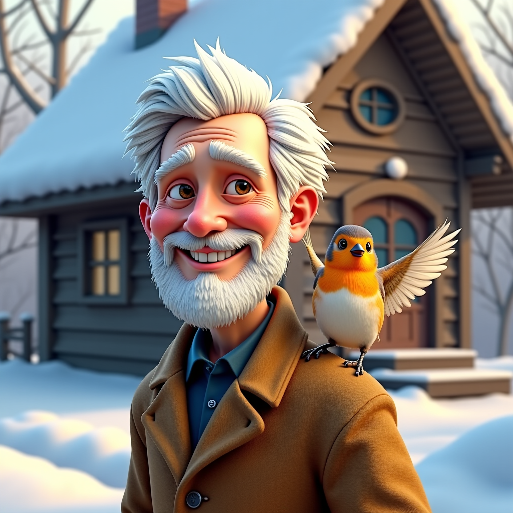 В одном маленьком деревенском домике, утопающем в снегах, жил добрый дедушка по имени Иван. Каждый день он вставал рано, чтобы покормить своих животных. Дедушка всегда находил время для своих друзей — птиц, которые прилетали к нему в поисках еды.