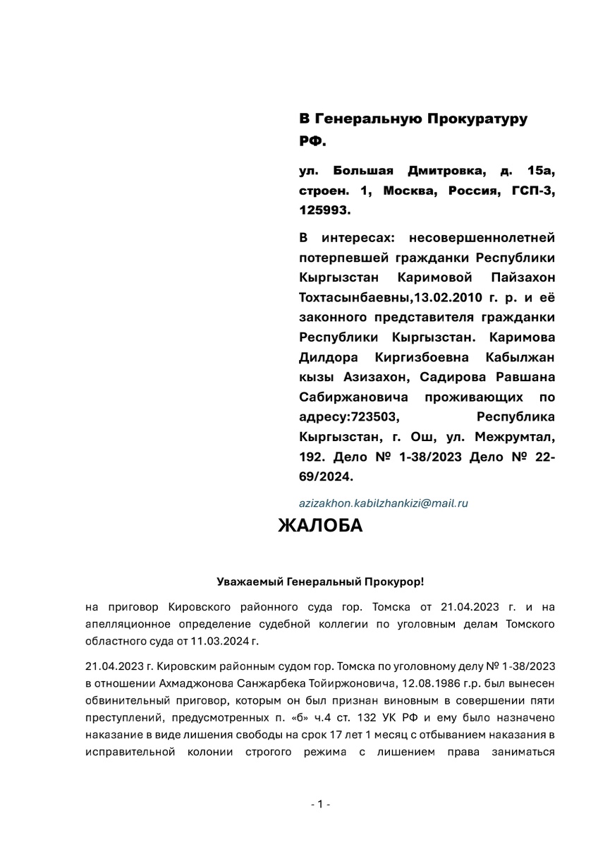 Обратите внимание на следующие грубейшие нарушение и ошибки следователи , прокурори и судьи в городе Томска Кировский район . Грубо нарушили наши права как потерпевшей и как права ребенка и Осудили незаконно невиновного человека .