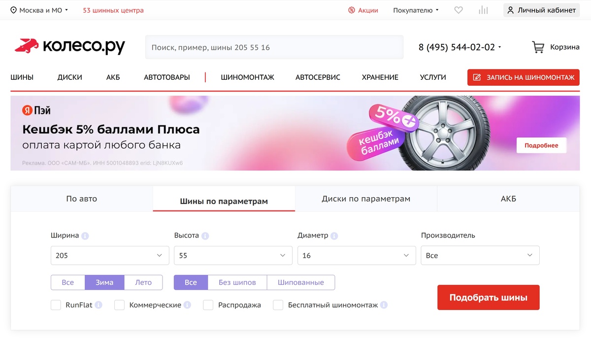 Колесо.ру — ведущий российский интернет-магазин, специализирующийся на продаже шин и дисков. Компания предлагает широкий ассортимент продукции от мировых и отечественных производителей, обеспечивая клиентов качественными товарами по конкурентоспособным ценам. Сеть сервисных центров, расположенных в различных регионах России, предоставляет услуги по шиномонтажу, балансировке и хранению шин, что делает обслуживание автомобилей удобным и доступным для автовладельцев.