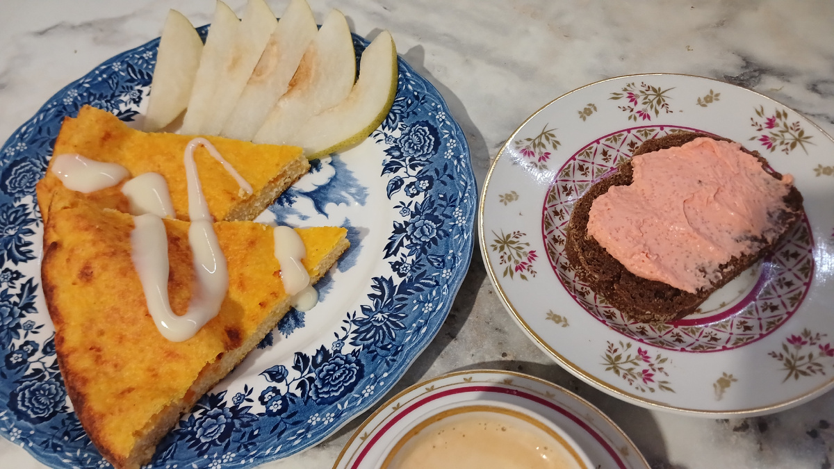 Экономное меню за 233 руб в день Завтракаем сегодня творожно-тыквенной запеканкой с грушей и сгущенкой. Еще чашечка кофе и бутерброд с деликатесной икрой минтая Сын на обед варил макароны. Ели их с тертым сыром и салатом и я сразу уехала в Рив Гош за покупками. По пути заглянула в Перекрёсток и удачно! Купила филе бедра курицы 3 упаковки и еще перепёлок к Новому году. 👍 оплачивала все давно уже купленным сертификатом. На перекус-полдник чашечка кофе и творожная запеканка А филе бедра сразу и приготовила к ужину - просто потушила в собственном соку с солью и перцем. Сама ела просто с салатом, у моих еще макароны были (остались от обеда) Меню год назад