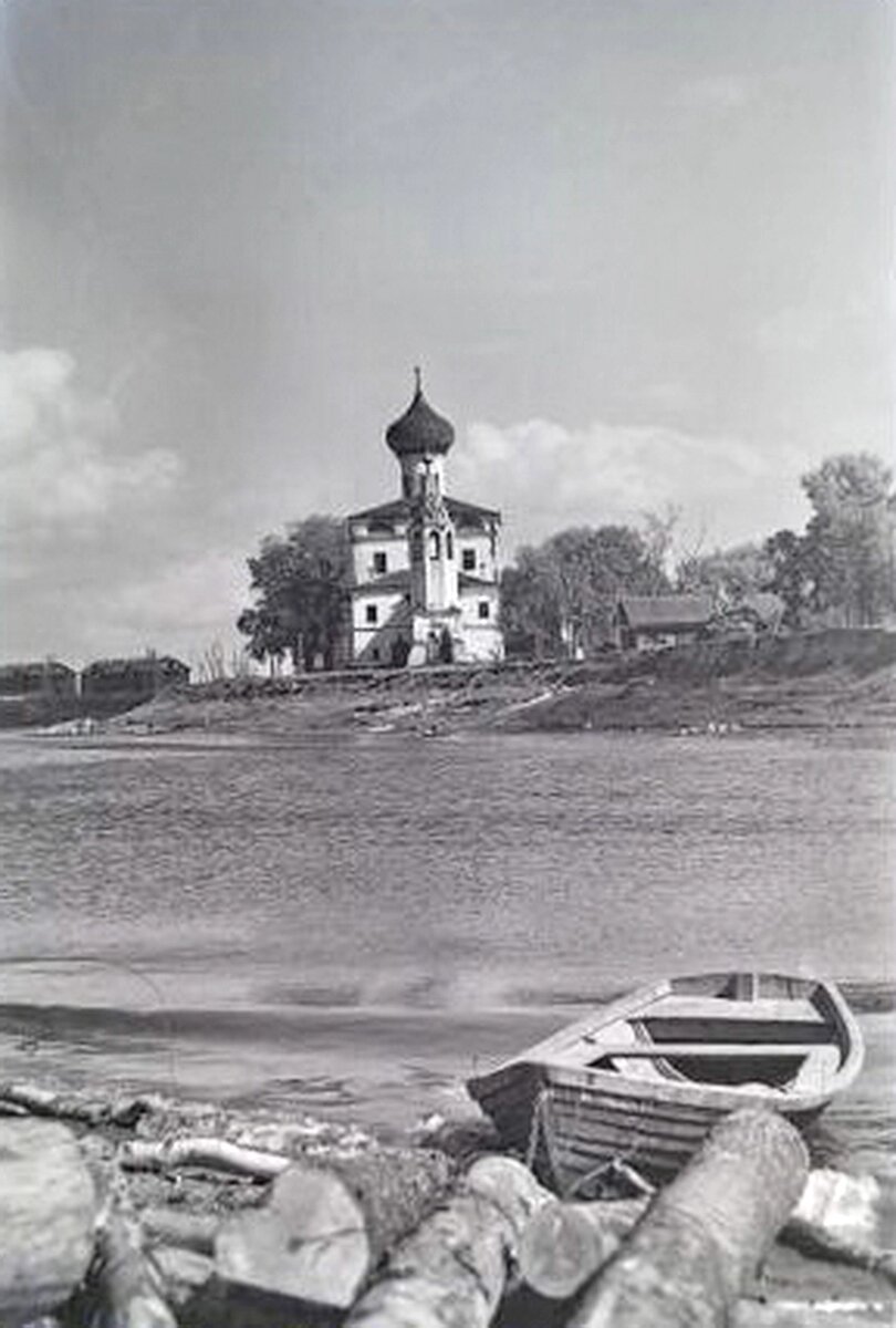 Церковь Андрея Первозванного на современной Набережной 6 Армии, 1956 год. Слева в кадре отсутствует ещё главная деталь этого вида сейчас - мост 800-летия Вологды. Вернее, нет исторического моста, который строили с 1959 по 1961 года. Современный же мост возвели к 2006 году.
