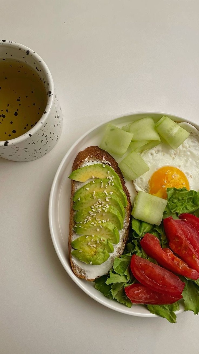 - Яичница на тосте из цельнозерновой пшеницы с сыром чеддер и половиной ломтика авокадо. Выпейте немного латте, чтобы добавить молочных продуктов.