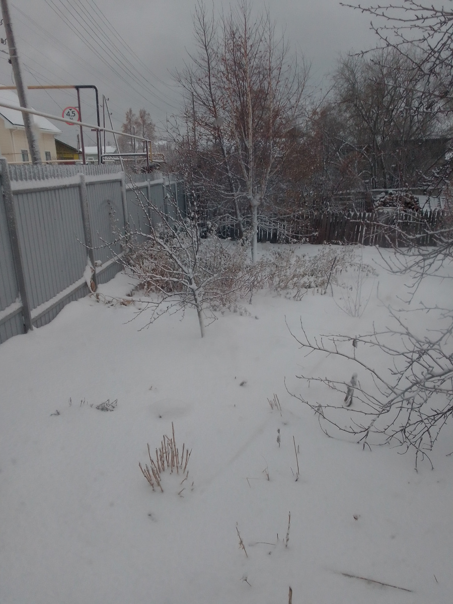 Проснулась сегодня в начале девятого. Муж уже смотрит телевизор. На улице метет. Выглянула в окно, а там все засыпано снегом.