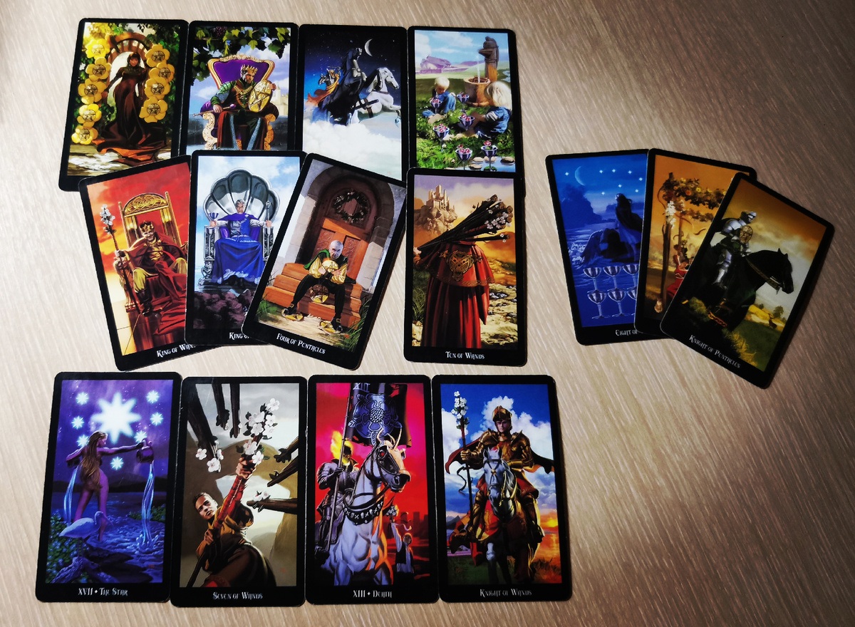 И вот как раз именно сейчас у него проблемы со страстью, с жезловыми движухами - не хватает огонька. Внезапно стал чувствовать, что ему необходима помощь извне - какие-то третьи лица, походы в увеселительные заведения, которые вернут ему эту самую искру. Куда-то его не туда несёт...