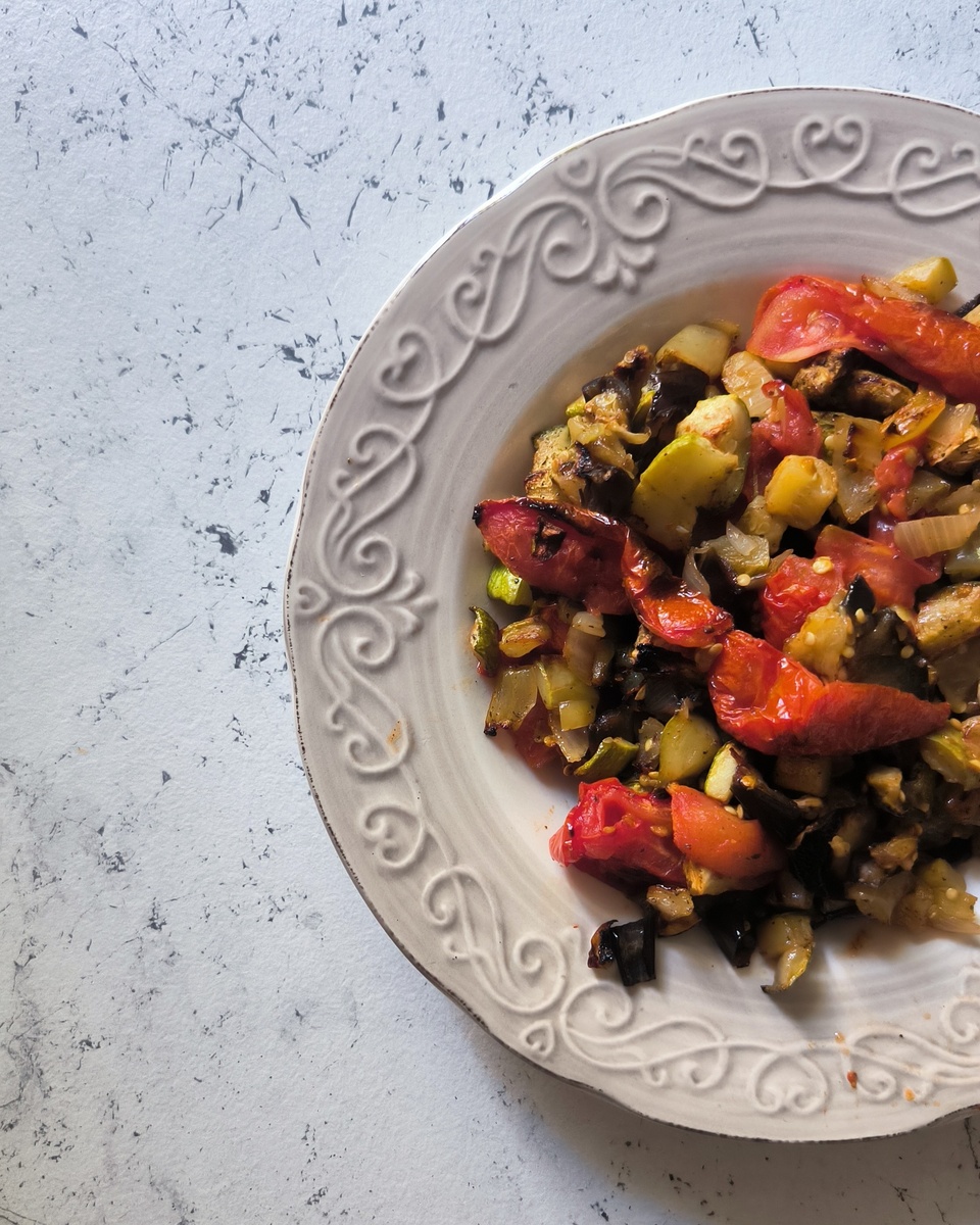Добро пожаловать в мир, где каждый кусочек рататуя передаёт солнечное настроение средиземноморских берегов. В мире кулинарии существуют блюда, которые покоряют сердца и столы своей универсальностью и богатством вкусов, и одно из таких блюд — рататуй. Это кулинарное произведение исходит из солнечного Прованса, но его простота и изумительно свежие ингредиенты сделали его любимцем во многих кухнях мира. Баклажан - 1 шт Молодые кабачки - 2 шт Репчатый лук - 1 шт Болгарский перец - 1 шт Чеснок - 3 зубчика Помидоры - 4 шт Оливковое масло - 3 ст.л. Соль, перец, специи - по вкусу Разогрейте духовку до 230 градусов. Это очень важно, так как высокая температура способствует лучшему обжариванию овощей. Вымойте все овощи. Нарежьте баклажан, кабачки, лук, болгарский перец и чеснок мелким кубиком. Помидоры оставьте пока целыми. В большой миске смешайте все нарезанные овощи, кроме помидоров. Добавьте оливковое масло, соль, перец и свои любимые специи. Тщательно перемешайте, чтобы каждый кусочек овоща