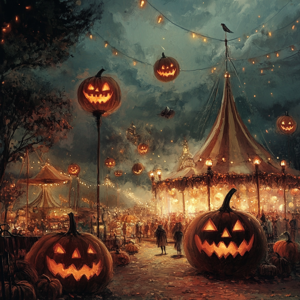 Даня огляделся. Прямо перед ними открывалось потрясающей красы место. Тыквы были везде: они лежали на деревянных прилавках со сладостями и яблоками в карамели на палочке, в воздухе витали огромные полые тыквы-фонари со светящимися на них рожицами. Играла музыка и снова так вкусно запахло сладкой ватой. Несмотря на то, что они были под землей, наверху все равно виднелось небо. Темное, грозовое, но от оранжевого света сотен горящих тыкв даже не особо страшное.