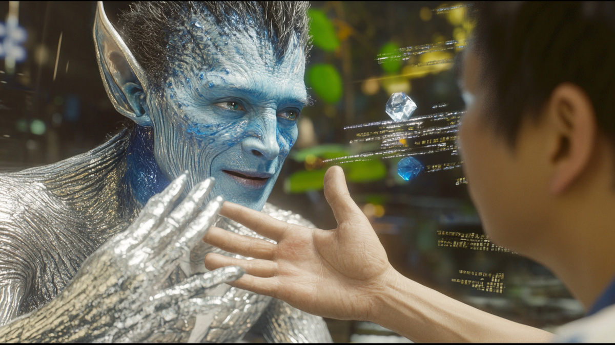 Я вздрогнул, пытаясь осознать, что он говорит на моём языке. Она казался очень странным. Голубая кожа блестела на солнце и отдавала серебром.