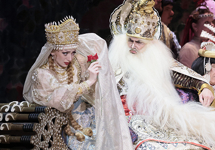 Спектакль иранского режиссера Лотфи Мансури появился в Мариинке в 1994 году: это был один из дебютных и успешных примеров копродукции театра с зарубежными партнерами. Мансури тогда возглавлял Оперу Сан-Франциско, и премьера прошла сначала за океаном. Насколько точно его спектакль сегодня воспроизведен в Москве, понять несложно: изначальная продукция была зафиксирована на видео неоднократно (существуют видеозаписи разных лет с Анной Нетребко и Хиблой Герзмавой в партии Людмилы).