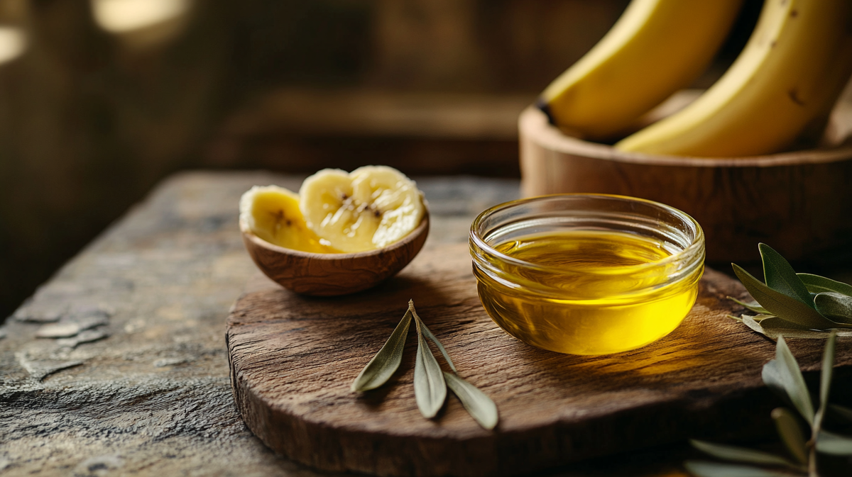 - Применение: Размять банан до состояния пюре и добавить оливковое масло, хорошо перемешать. Нанести маску на влажные волосы, уделяя внимание концам. Оставить на 20–30 минут, затем смыть шампунем.