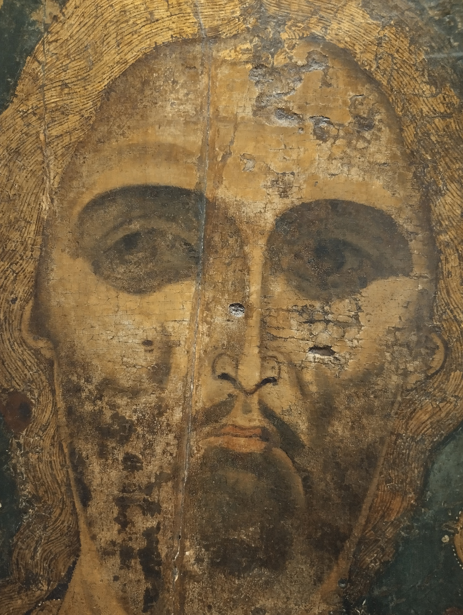 Спас означает Спаситель. Иисус Христос, Бог, вочеловечившийся через рождение от смертной женщины. Он сделал это, чтобы спасти человечество - принести ему свет истины и своей мученической гибелью искупить его грехи. Описание внешности Иисуса Христа в Евангелие нет. Но уже в первые века христианства сложился узнаваемый иконографический образ. Мы знаем о преданиях, рассказах людей, письмах - эти источники упоминают внешний вид Спасителя. Икона "Спаса Златые Власы" относится к типу икон Христос Халки, на которых Спаситель изображается без нимба на фоне креста. Это один из древнейших византийских образов, символ Константинополя. По преданию такой образ располагался над медными воротами Константинопольского дворца. "Ворота Халки" в переводе с греческого — "медные ворота". Находится данный образ в Музее Московского Кремля, Успенского собора. Датируется первой четвертью 13 веке. Размер 58,5х42 см. В Кремлевские музеи попасть сложно, а вот в Музеи Суздальского Кремля попасть мне удалось, чему