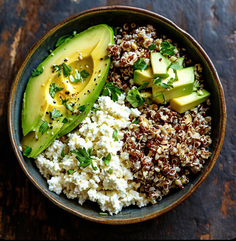 Лимонный сок — 1 ч. ложка. Процесс готовки: Полезные свойства авокадо и творога: