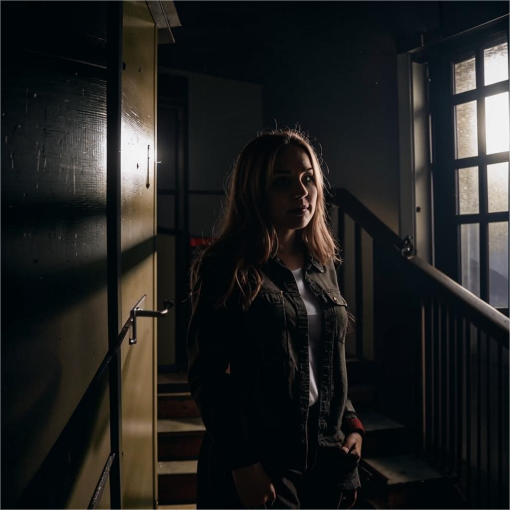 Открыв дверь, она увидела, что в комнате кто-то стоит. Это был силуэт мужчины, тёмный, размытый, с пустыми глазами, полными отчаяния. Он стоял прямо напротив двери, не двигаясь. Шёпот звучал всё громче, словно он звал её к себе.