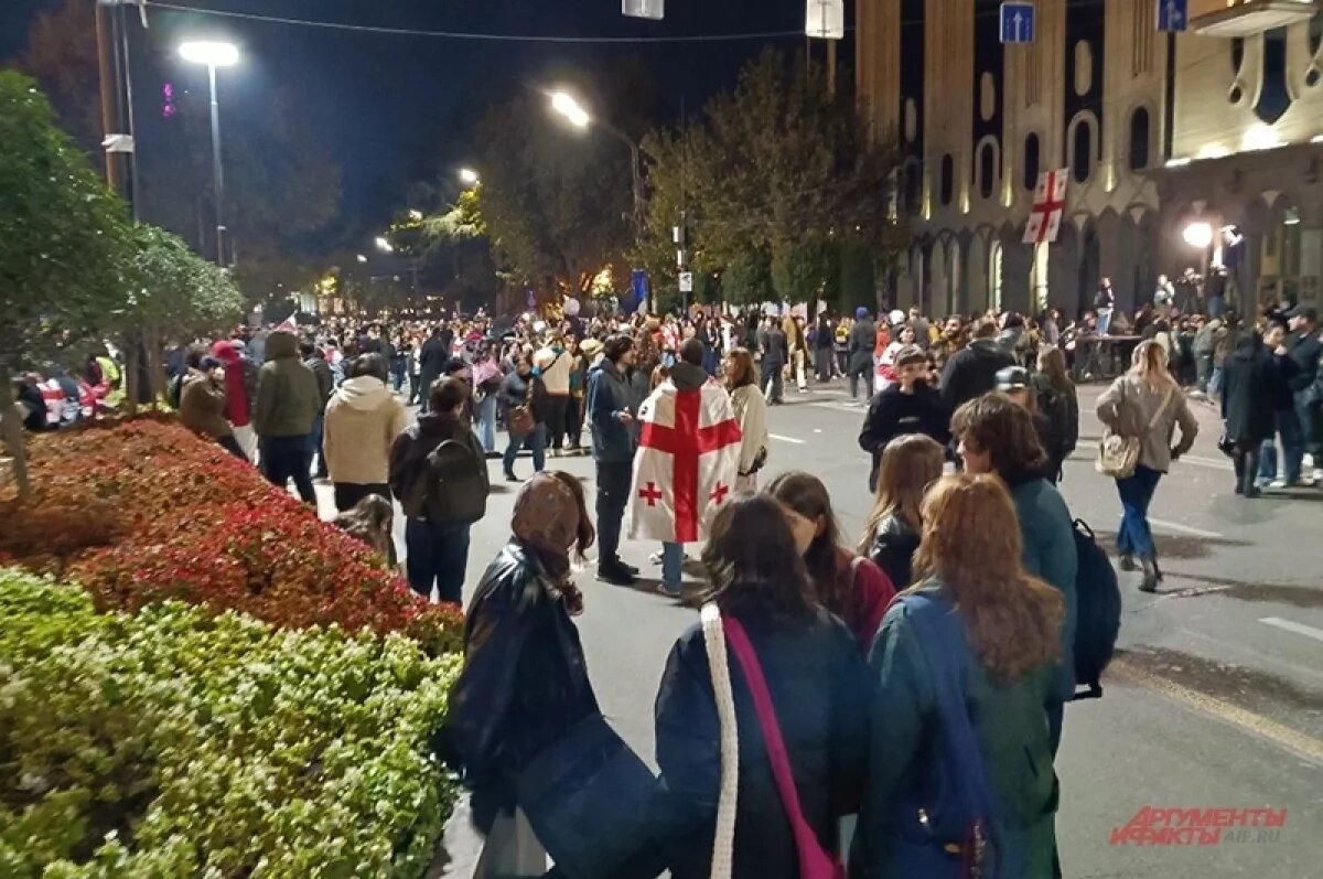 В районе обеда проигравшая парламентские выборы оппозиция начала готовить сцену для митинга у стен правительства Грузии. Несмотря на то, что акция была несанкционированной, полицейские наблюдали за этой картиной со стороны, не вмешиваясь. В конце концов, к митингу накануне призвала прозападный президент Саломе Зурабишвили — родившаяся во Франции, бывший посол этой страны в Грузии, получившая гражданство только в 2004 году, чтобы иметь возможность баллотироваться на выборах.