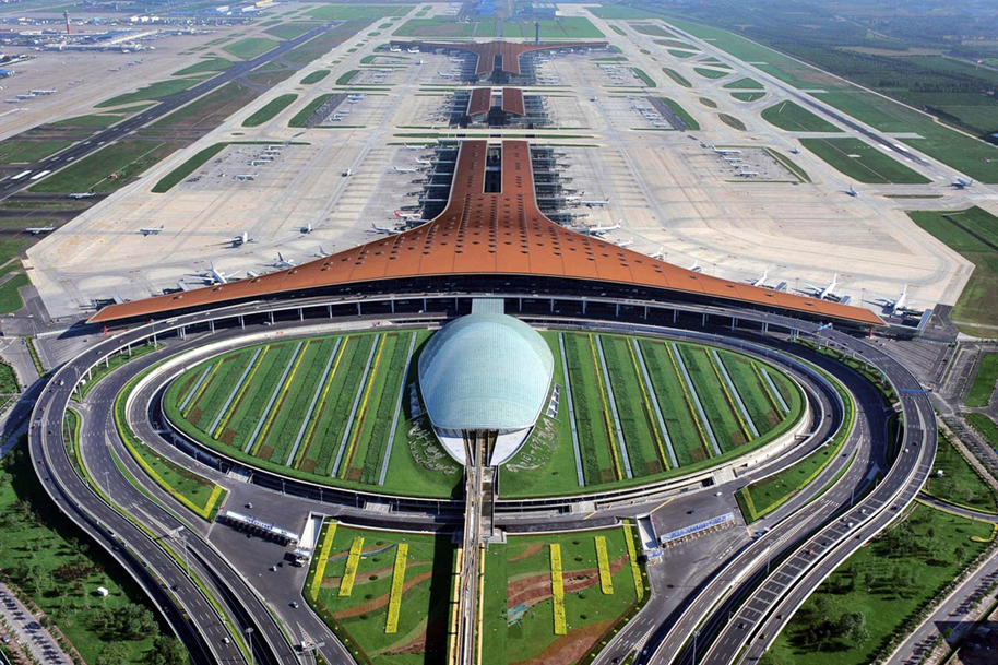 Это позволяет обслуживать ежегодно более 90 млн. пассажиров из различных стран мира. Несмотря на то, что аэропорт и так имеет достаточно внушительные размеры, его планируется и дальше расширять – Европейский инвестиционный банк с этой целью уже провел финансирование в размере 500 млн. евро. Аэропорт Пекина привлекает прибывающих не только своей масштабностью, но и дизайнерским оформлением комплекса. Особенно интересно архитектурное исполнение здания терминала 3 – самого нового и наиболее современного. Здесь можно увидеть элементы, имитирующие часть Великой стены с 9-ю драконами, и медный чан из Запретного города, предназначенный для тушения пожаров.