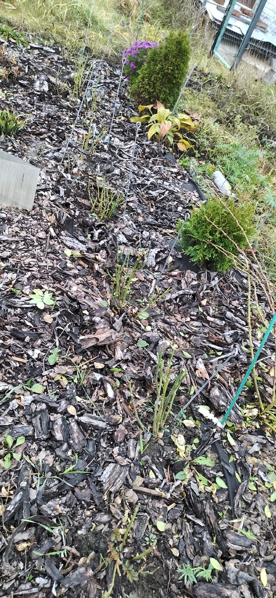 На длинный розарий пленки не хватило, позтому тут буду окучивать перегноем и укрою только спанбондом плотностью 60. Вообще слышала, что в МО можно не использовать пленку, но идея с ней мне нравится (пока в теории). Вот и будет возможность сравнить зимовку пленка+спанбонд и только спанбонд.