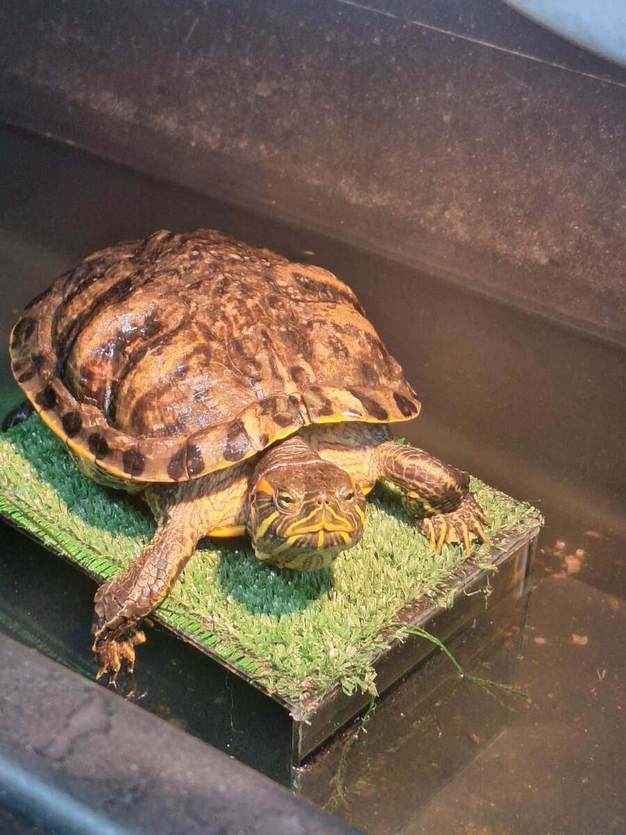 Черепаха Дина пережила много трудностей. Ее выловили дачники в небольшой речке. Они пожалели животное, и все лето держали на участке, в емкости для воды, подкармливали, конечно. Когда стало холодно, принесли в «Дружок».