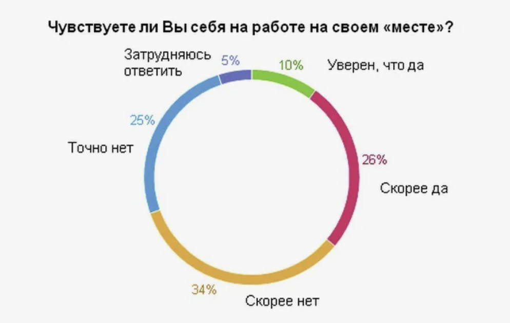 В России большая часть людей не работает не по специальности и / или "не на своём месте", т.е. не любят свою "работу"