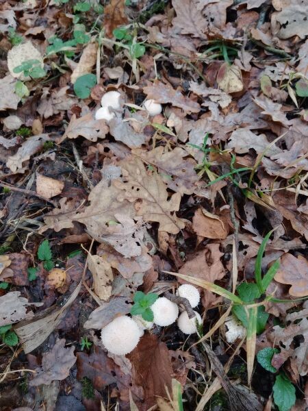 Чем хорош гриб дождевик? Он белый и на пожухлой листве выделяется. Видно его далеко. Гриб этот съедобный и было бы на дворе лето, то рекомендовал бы его для сбора без всяких сомнений. Но на дворе глубокая осень. Время сейчас не грибное. Все грибы пережившие морозы могут испортится и ими можно отравится. А посмотреть на них можно. Это не возбраняется.