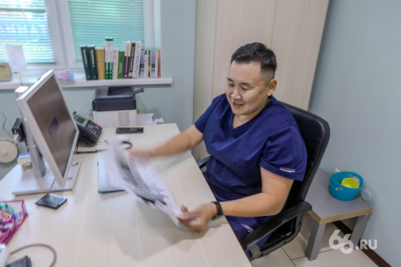 Тумэн Лыгденов встречает нас в своем кабинете в клинике «Фамилия». На подоконнике много специализированной литературы, на шкафу — картинки из теста Роршаха. Врач вежлив, сдержан и много улыбается, даже когда говорит о серьезных вещах.