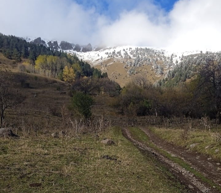 Вот и выпал первый снег в горах. Куда поехать в выходной? Решено - на гору Лысая (КЧР, Теберда). Туда хотелось пойти летом, да так и не хватило времени. Выходные пролетают быстро. К северо-западу от реки Теберды находится гора Лысая, получившая свое название за совсем безлесную вершину округлой формы, хотя склоны покрыты густым лесом, переходящим в альпийские луга с множеством разнотравия. У подножия горы течет река Муху. Местные называют эту гору Гимых Сылты. Протяженность маршрута 8-9 километров от асфальта. Часть пути можно проехать по хорошей грунтовой дороге, где в летнее время на джипах возят туристов. Так же в хорошую теплую погоды люди спокойно поднимаются только пешком. Но было холодно, местами снег. Решено было воспользоваться автомобилем повышенной проходимости и часть пути преодолеть на джипе. Ехали по Яндекс картам. Далее пешком. Маршрут для неподготовленного туриста тяжеловат. Есть ровные участки пути, а есть и резкие подъемы. Часть дороги проходит через густой хвойны