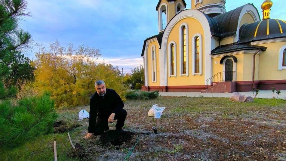 Высадил кедры муж Татьяны, протоиерей Сергий Коростелин. Они будут расти на территории храма в честь Успения Божией Матери в селе Хлебодаровка Волновахского района.