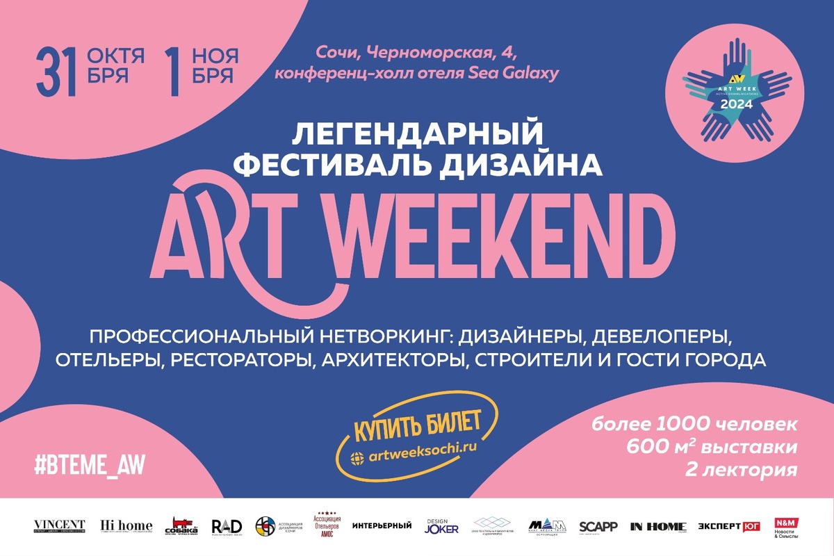 Приглашаем вас стать участниками фестиваля дизайна ART WEEK 2024. Он будет проходить в Сочи с 31 октября по 1 ноября.