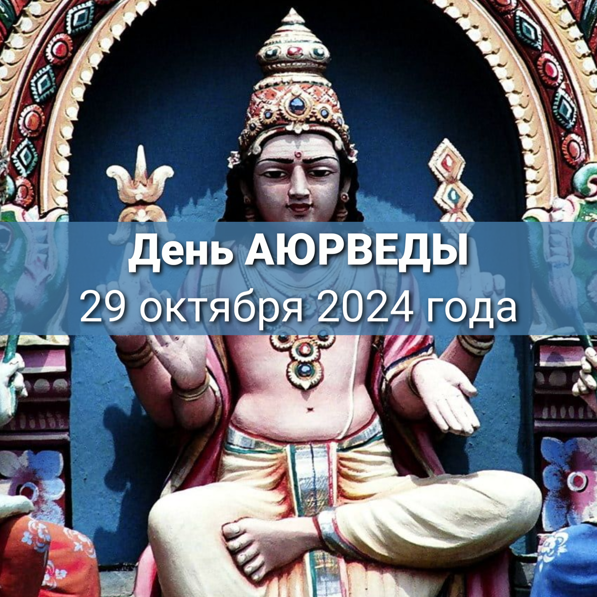 Каждый год в 13-ые лунные сутки убывающего месяца Картик в Ведической духовной традиции отмечается праздник Дханвантари джаянти – день явления (рождения) Бога медицины (Аюрведы) Дханвантари. И этот день принято считать Днём Аюрведы. В 2024 году этот день выпадает на 29 октября. Дханвантари - одно из частичных земных воплощений (аватар) Бога Вишну, описанное в древнеиндийских писаниях (пуранах). Так в «Бхагавата-пуране» о Дханвантари говорится следующее: «…Всевышний [Вишну] низошёл в мир в образе врачевателя Дханвантари» (книга 1, глава 3, текст 17). «Сойдя в бренный мир в облике Дханвантари, Всевышний даровал людям науку о целительстве… Стяжав тайное знание от Верховного Врачевателя, живые твари научились приумножать годы своего пребывания в зримом мире» (книга 2, глава 7, текст 21). Дханвантари принято изображается в форме Вишну с четырьмя руками, которые держат амриту (эликсир бессмертия), раковину, чакру и священное писание (иногда вместо последнего - пиявку или лечебные травы. А «Б