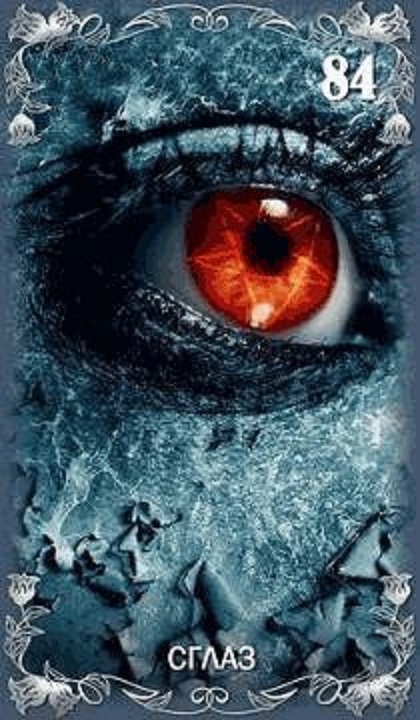 Карта Сглаз это восемьдесят четвертая карта колоды, которая обозначает сглаз, наблюдение, негативные события.