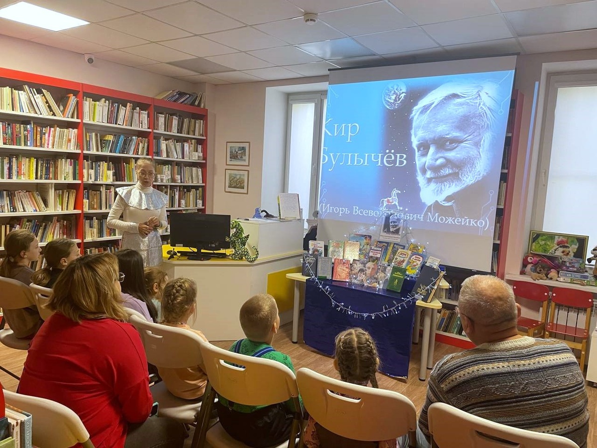 18 октября 2024 года мы отмечаем 90 лет со дня рождения Кира Булычёва –выдающегося отечественного писателя-фантаста, драматурга, сценариста, переводчика и историка. Книги Булычева полны удивительных существ и необычных приключений, которые с первых страниц захватывают воображение читателей. Булычев обладал редкой прозорливостью, сюжеты его произведений зачастую сбываются в наши дни. 26 октября в Детско-юношеской библиотеке состоялось фантастическое путешествие «Книжная галактика Кира Булычёва» посвященное 90-летию со дня рождения писателя. Сотрудник библиотеки Елена Лисицына, в образе гостьи из будущего, рассказала участникам мероприятия о жизненном и творческом пути писателя. Читатели узнали о том, что «Кир Булычев» – это литературный псевдоним, о том, как родилось на свет придуманное имя фантаста, что настоящее имя автора – Игорь Можейко, и он был учёным-историком, востоковедом, доктором исторических наук. Посетители познакомились с литературными произведениями Кира Булычева, услыша