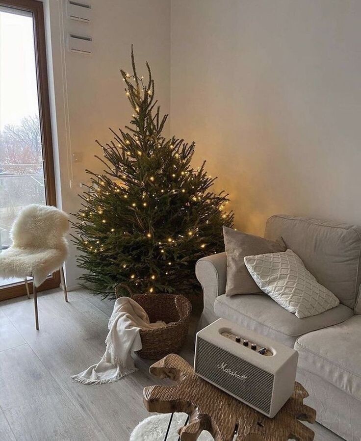 - Пледы и покрывала: добавьте несколько мягких шерстяных или вязаных пледов на диваны и кресла. Текстура материала добавит уют, а приятные оттенки и новогодние узоры (например, снежинки или олени) настроят на праздничный лад.