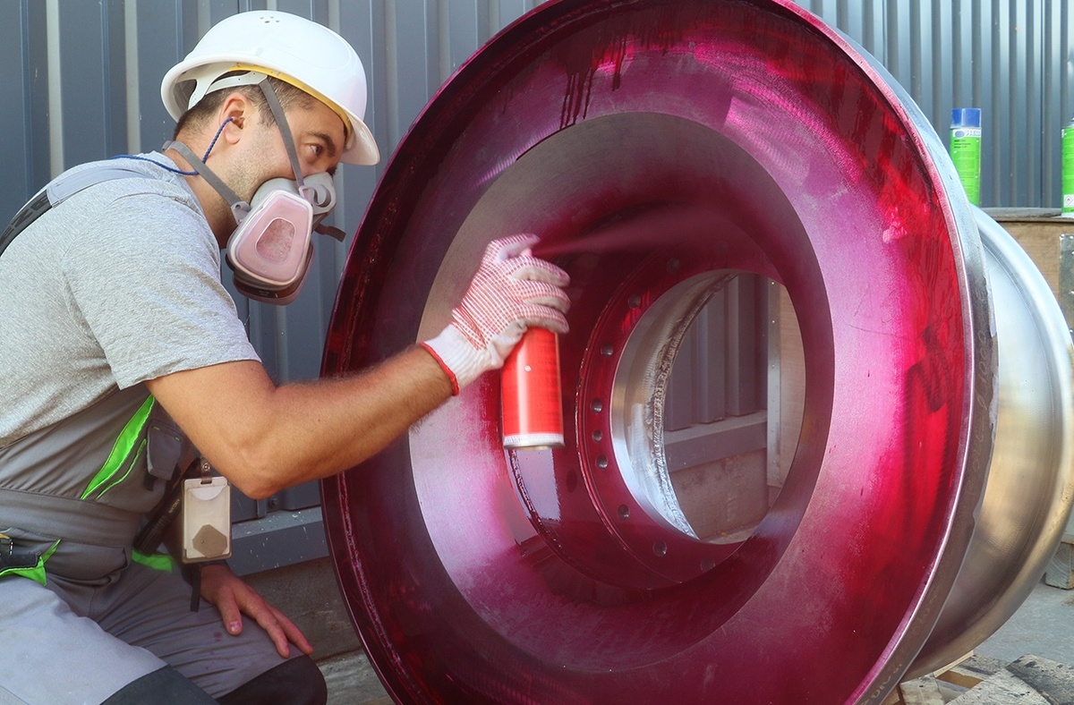 Рассмотрим применение хроматических индикаторов для анализа целостности сварных швов и выявления поверхностных либо сквозных дефектов. Метод контрастной дефектоскопии с использованием хроматических индикаторных веществ, таких как пенетрант и проявитель, позволяет провести контроль сварных швов, а также обнаружить дефекты на поверхности металлических и неметаллических изделий. Основные стадии контроля при помощи контрастной дефектоскопии с хроматическими индикаторами включают следующие этапы: Подготовка объекта к проверке должна включать предварительное очищение поверхности от различных загрязнений, включая жировые плёнки, остатки лакокрасочных покрытий и другие загрязняющие вещества. Также поверхность следует освободить от дефектоскопических материалов и полностью высушить. Неорганические загрязнения убирают механическим способом с помощью ручного, пневматического или электрического инструмента. Остатки загрязнений удаляют сжатым воздухом или чистой ветошью. От органических загрязнений