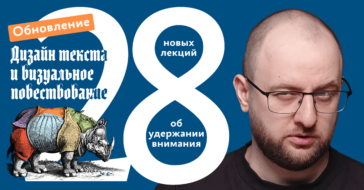 Максим Ильяхов обновил лекции второй недели практического курса «Дизайн текста и визуальное повествование». В новых лекциях Максим рассказал обо всех форматах для привлечения внимания зрителя: о картинках, скриншотах, видео, схемах, таблицах, фактоидах, цитатах, многоколоночных текстах. На курс открыта запись: он продлится три недели и пройдёт с 11 по 29 ноября в дистанционном формате.