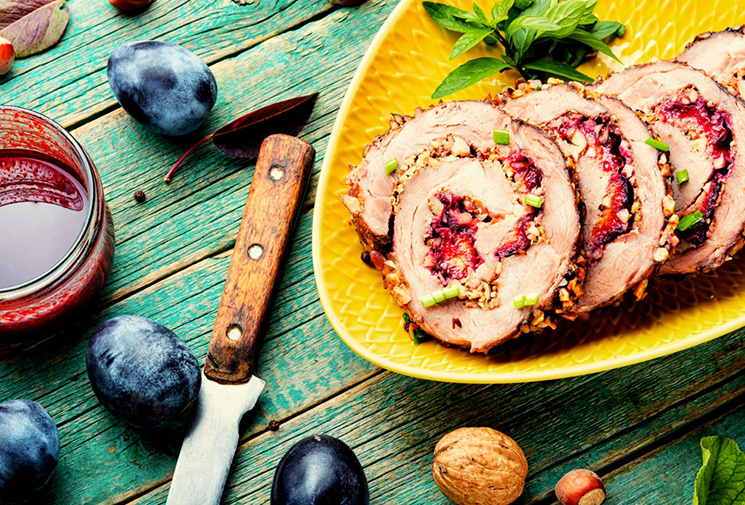 ● Соль Чернослив заливаем 1 стаканом кипятка, даем постоять 5-7 минут и отжимаем. Карбонад разрезаем вдоль, не дорезая 1 см до края и разворачиваем как книжку. Слегка отбиваем мясо молотком, солим и перчим. В сковороде разогреваем 1 ст. л. оливкового масла, выкладываем шпинат и томим его 5 минут. Выделившуюся жидкость сливаем. На пласт карбонада выкладываем чернослив, шпинат и кедровые орешки. Сворачиваем мясо в плотный рулет и обвязываем к