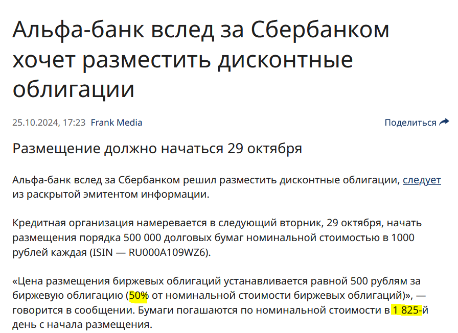 1 825 дней - это как раз 5 лет. Цена и срок такой же, как был у облигаций Сбербанка.