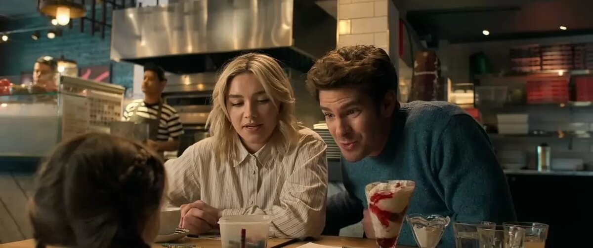 Пожалуй, главное звено нового проекта Краули, благодаря которому столь скромная и страшащаяся экспериментов фабула сверкает яркими красками - не слишком стандартная для подобного рода работ система повествования. Любовь героев разрубает время и пространство, блестит в начале фильма и пускает слезу под его концовку. И чем больше маленьких подробностей касательно проработки режиссёр раскрывает зрителю, тем сильнее можно заметить отчётливый контраст между героями Пью и Гарфилда: шеф-повар, знающая все азы высшей и молекулярной кулинарии, мило соотносится с молодым разведённым мужчиной, грызущим одни лишь печеньки на протяжении львиной доли повествования фильма. Противоположности притягиваются: Краули из года в год остаётся верен и этому жизненному правилу, и своему конъюнктурному стилю заодно