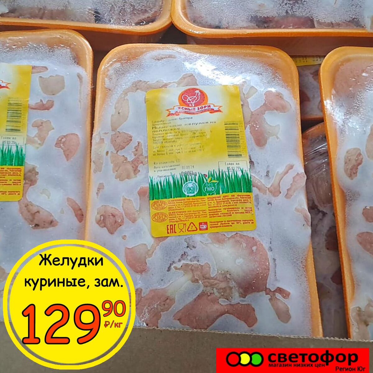 1 кг. замороженных куриных желудков. Одно время я их часто брала, готовила вкусно, сначала тушила, потом обжаривала с лучком, в последнее время перестала их покупать, сама незнаю почему, нужно, наверно, возобновить. Дёшево и вкусно.