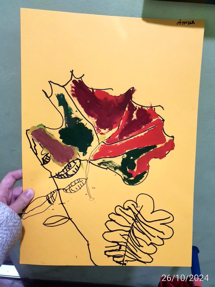 Закрутилась и не показала последние работы дочки (5 лет) из изостудии. Агния ходит на занятия второй год. Так интересно наблюдать. В прошлом году все дети рисовали не очень, если мягко сказать. Группа у неё для детей 4-6 лет. 4 года и 6 лет это ощутимая разница. В этом году дети-ровесники стали рисовать лучше, но не Агния. Это заметно. И не только в изостудии, даже в садике. Там такая же картина. В прошлом году дети рисовали кто во что горазд, а в этом году видны аутсайдеры и лидеры в рисовании и лепке. Занятие N5. Кленовый лист. Программы по годам примерно одинаковые. В прошлом году тоже рисовали кленовый лист. Но в луже. Погода мокрая была. 😅 За кленовый лист Агнию педагоги хвалили. Больше всего дочке нравится смешивать краски и рисовать разными оттенками. Она и дома, если карандашами рисует, то разноцветные картинки делает. Много цветов на одном изображении. Занятие N6. Город, графика. Черно-белые задания Агнии даются тяжелее. В них нет цветов, которые Агния любит. И вообще л