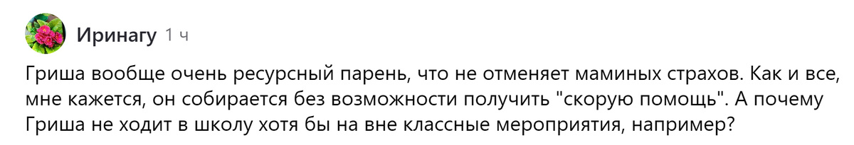 Вот такой вопрос поступил под вот этой статьёй: У меня ответа на этот вопрос нет. Поэтому я обращаю его к читателям. Товарищи, почему ваши сложные или не очень сложные дети, которые учатся на надомной или индивидуальной форме обучения, не ходят на внеклассные мероприятия? А если ходят, то на какие? Как ваши сложные и не очень сложные дети относятся к этим походам? Как школа относится к вашим походом в неё? Расскажите. Поделитесь опытом.