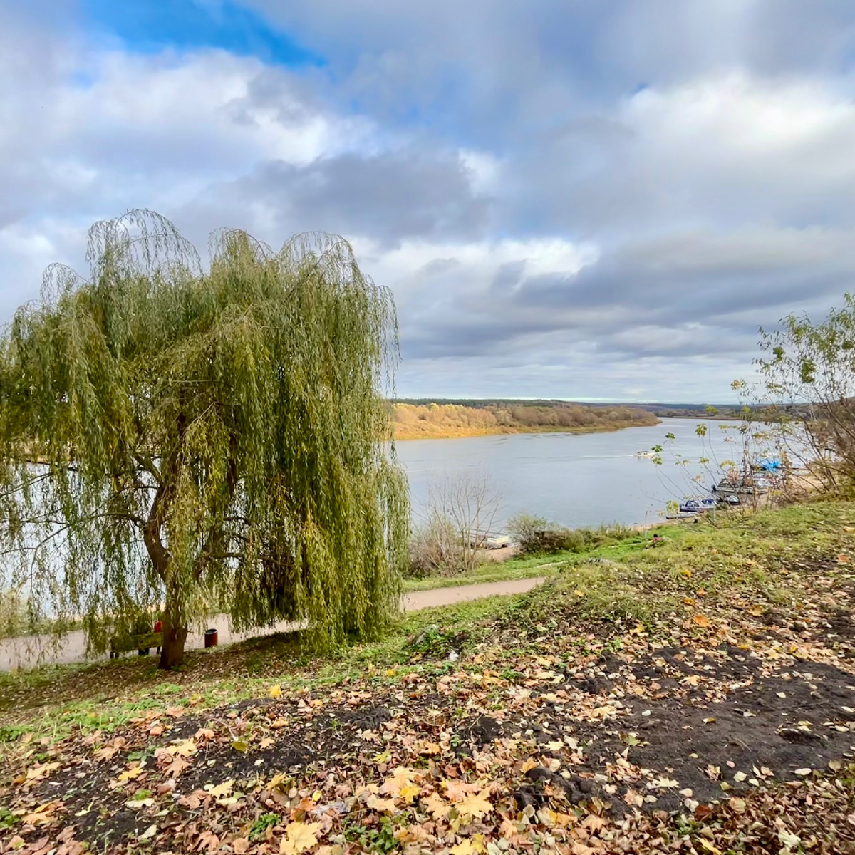 Повсюду листья желтые, вода Прозрачно-синяя. Повсюду осень, осень! В романтичную осеннюю пору захотелось нам с семьей поехать в красивое уютное место, подальше от городской суеты и уныния. Выбор пал на Тарусу, Серпухов и Боровск (о них чуть позже). Таруса находится в Калужской области и не так далеко от Москвы, как например Плес, и славится не меньше. Дорога хорошая, правда из-за предстоящих солнечных выходных, на дорогах образовались пробки. В итоге дорога туда заняла около 3 часов. По приезду нам быстро удалось запарковаться в центре города и мы пошли гулять. С набережной по левую сторону нам открылся чудесный вид на реку Ока. Вид особенно хорош с высокого берег. Просматриваются все изгибы неспешной реки, пляж и небольшая пристань, на которой можно арендовать лодку для прогулки к усадьбе Поленово. По правую руку от набережной стоят памятники Ахмадулиной и Паустовскому. Место создано для неспешных прогулок и созерцания природы. В поисках обеда, опять по рейтингу Яндекса, я заранее