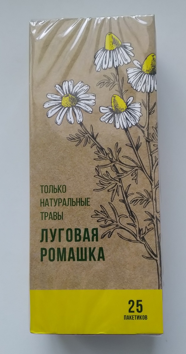 Это зелёный чай с ромашкой. В составе только 2 компонента, без ароматизаторов и консервантов. В упаковке 25 пакетиков. Вдыхая аромат этого чая, невольно возвращаешься в тёплое лето, насыщенное душистыми травами. Сразу забываешь про ежедневную суету.... К напитку можно добавить мёд или любимый десерт, чтобы получить максимум удовольствия. Цена за упаковку 31,10 рублей. Данная информация носит исключительно ознакомительный характер и не является рекламой или руководством к действию.