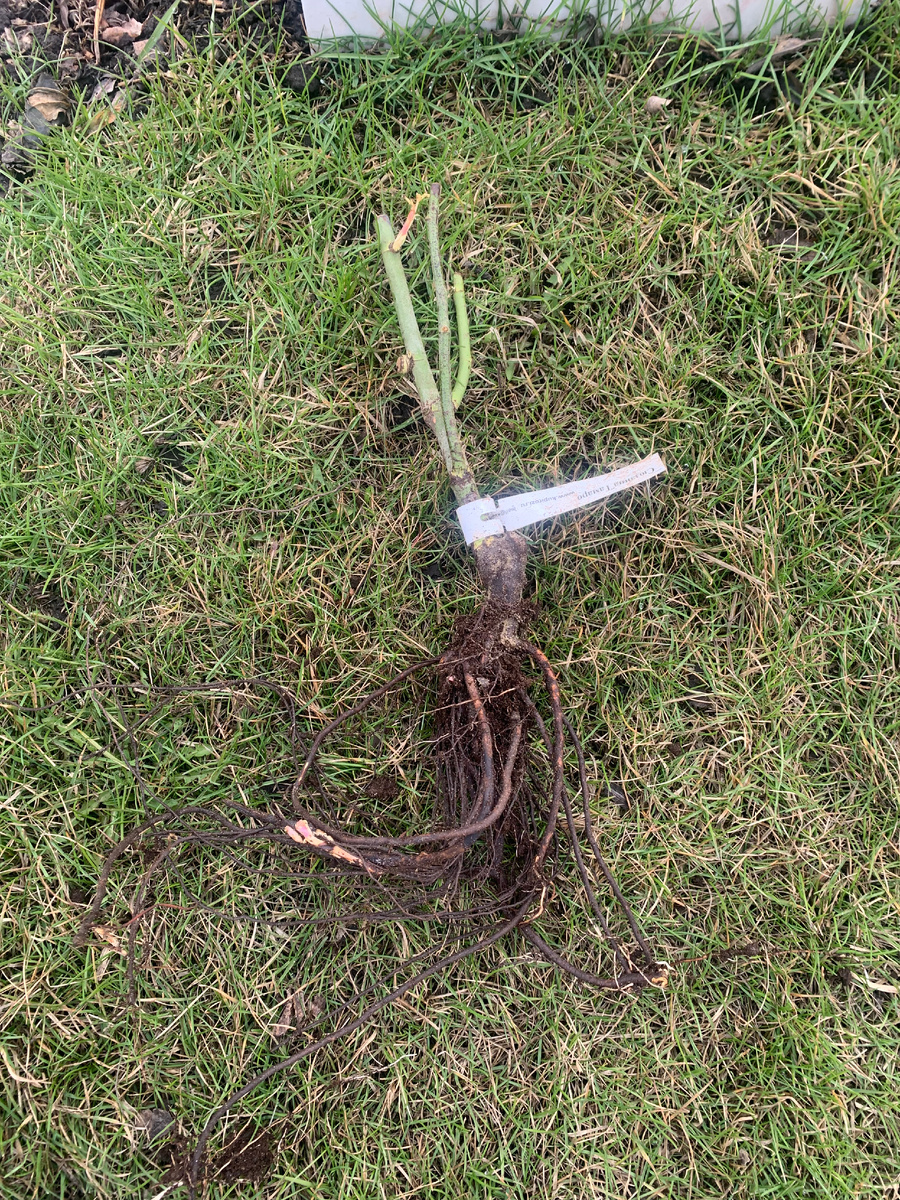 Саженцы в коробках, обычно залиты воском, поэтому сложно определить цвет побегов. Из питомника саженцы приходят с зелеными стеблями, которые не должны быть сухими или сморщенными. На саженце должно быть не менее трех стеблей, но бывает по-разному.