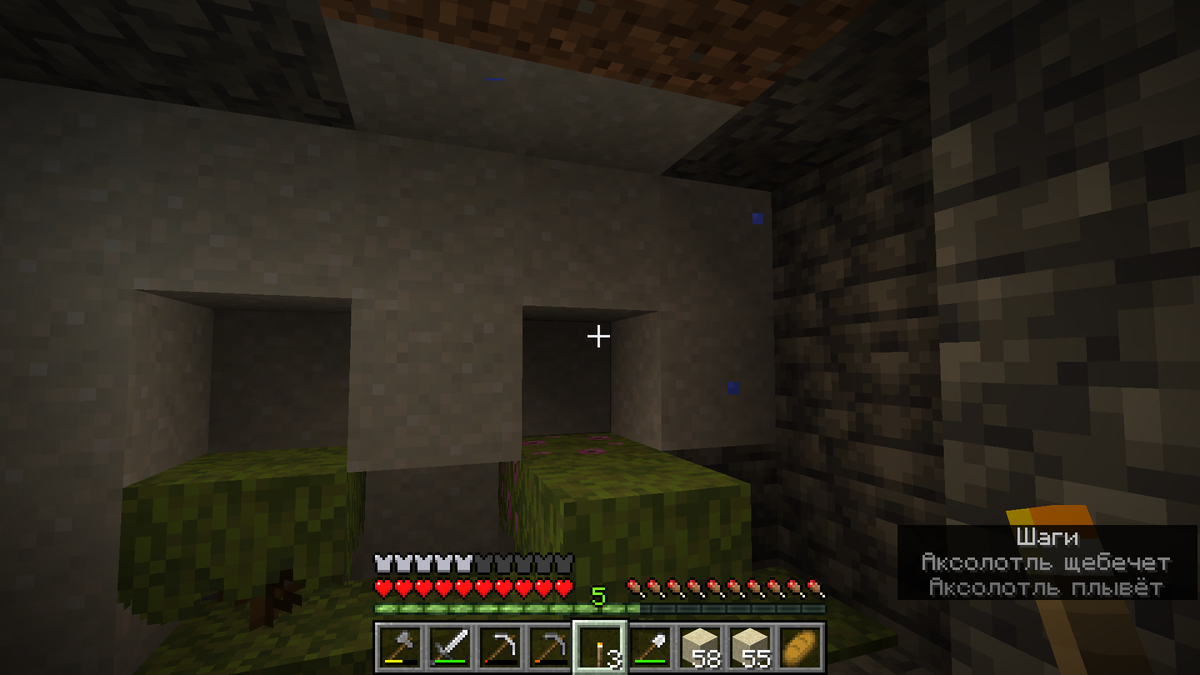 Когда я добрался до затопленной пещеры, то заценил как красиво и таинственно она выглядит, словно я впервые играю в Субнавтику и вот-вот из-за угла выплывет Левиафан. Правда, здесь мне не требовался батискаф, потому что в Майнкрафте пополнять запасы воздуха можно при помощи обычных дверей, создающих воздушный карман 😆