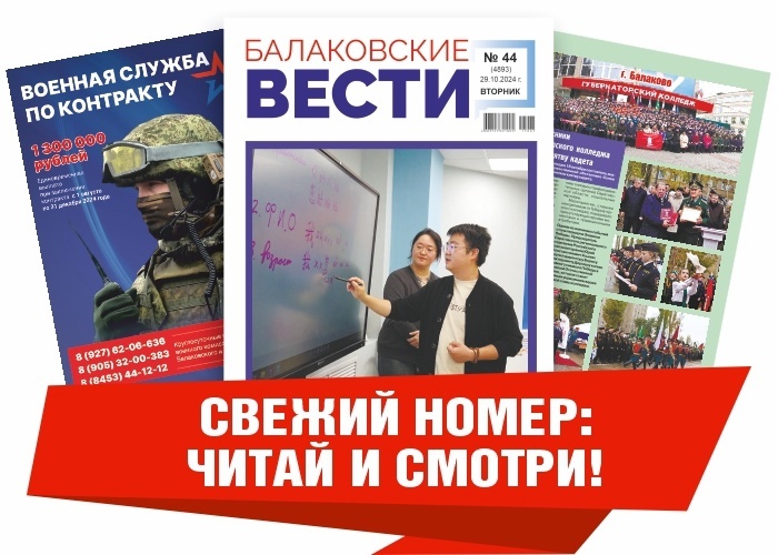 Читайте в свежем номере №44 от 29.10.2024 г. газеты «Балаковские вести»: