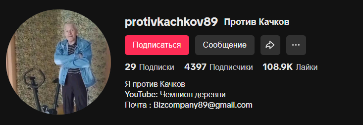 В YouTube и TikTok набирает популярность один дедуля, который яро не любит качков (борцов, шахматистов, футболистов тоже не любит). Кто он и что за дедуля — расскажу подробнее, насколько это возможно. Итак, его имя я не знаю, так как не нашёл в его каналах видео, где хотя бы какая-то информация говорилась о том, кто он, как его зовут, каким видом спорта занимался, сколько ему лет и так далее. Всё, что известно: дедуля называет себя «чемпионом деревни», и у него есть ученик, чьего имени он также не называет. В TikTok у дедули чуть больше 4000 подписчиков, а в YouTube немного не дотягивает до 800. Однако контент смотрят весьма охотно. Итак, дедуля против качков и аргументирует это тем, что «качки — это не спорт». Тут, как фитнес-тренер, вынужден согласиться. Качки качают мышцы, чтобы они были больше, и это необходимо, чтобы выглядеть лучше. Думаю, не стоит говорить о том, что выступающие бодибилдеры на сцене показывают свою внешность, а не силовые показатели, как те же тяжелоатлеты (деду
