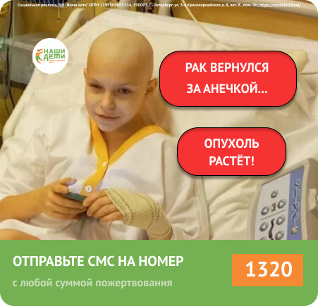 Здравствуйте, дорогие помощники! Анюта уже так привыкла жить без капельниц и операций. Этот ужас она почти смогла забыть. Но ошеломляющее известие о рецидиве снова перевернуло жизнь семьи, которая совсем ненадолго обрела счастье... Им казалось, что тот кошмар никогда больше не повторится. РАК пришёл за Анютой, когда ей было всего 2 года. Тогда они даже не успели испугаться, а сразу начали действовать. Но сейчас возвращение болезни всей своей маленькой женской семьёй они восприняли как вызов, как проверку на прочность. Только вызов в этот раз гораздо страшнее - опухоль агрессивно растёт. Главное, что семья уже знает, где однажды спасли их малышку. Там готовы спасать её снова. Но у одиноко растящей двоих дочерей женщины нет таких средств. В этот раз им может помочь лишь человеческое участие. Только Ваша помощь способна совершить чудо – спасти жизнь ребёнка. И сохранить счастье возможности видеть! Такие два похожих слова – счастье и участие. Пусть отведут беду от ребёнка Ваши забота и уча
