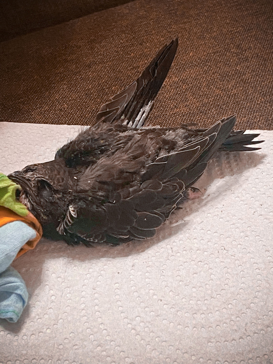 - Не нужно обильно поить стрижа. А если даете воду, то вешайте капельку на боковую сторону клювика, чтобы не залить дыхательные щели на небе и языке.