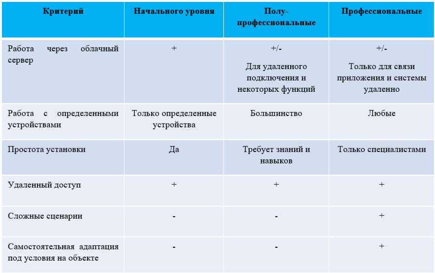 1. По уровню требований к специалисту по монтажу и настройке: