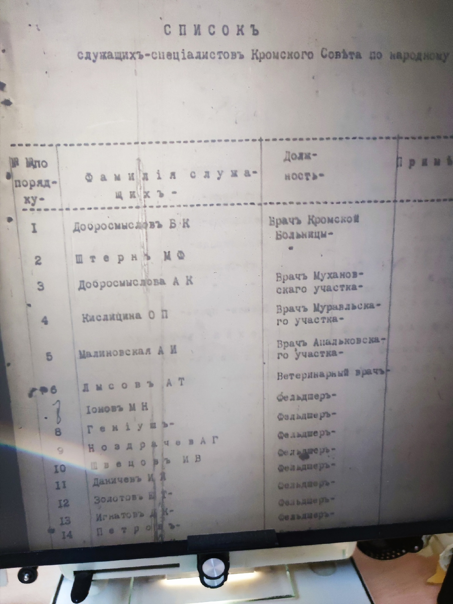 СПИСОК МЕДИЦИНСКИХ РАБОТНИКОВ КРОМСКОГО УЕЗДА В 1918 ГОДУ.